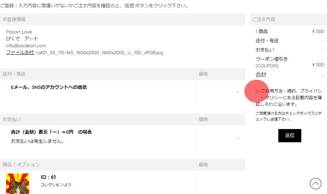 ご同意頂き「チェックボックス」、「送信」を順にクリックして下さい。