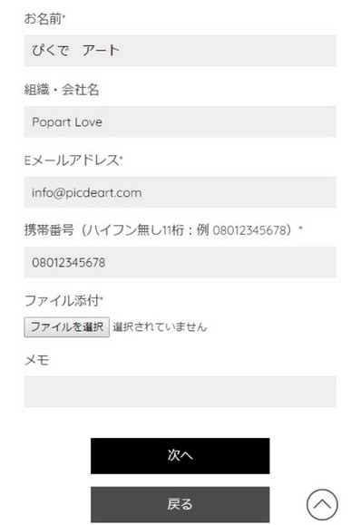5:お客様情報を入力しアート加工を行うスマホ写真を添付する