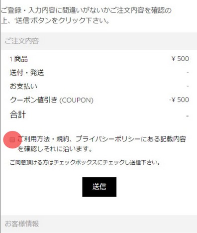 ご同意頂き「チェックボックス」、「送信」を順にタップして下さい。