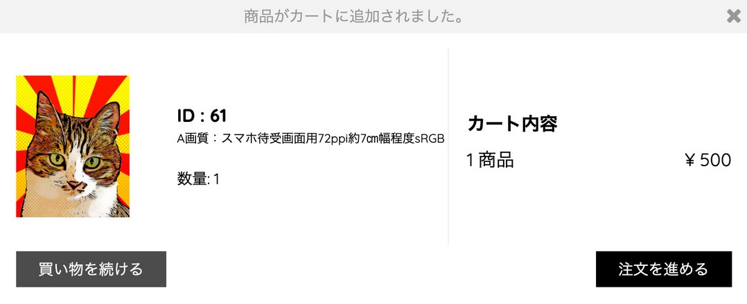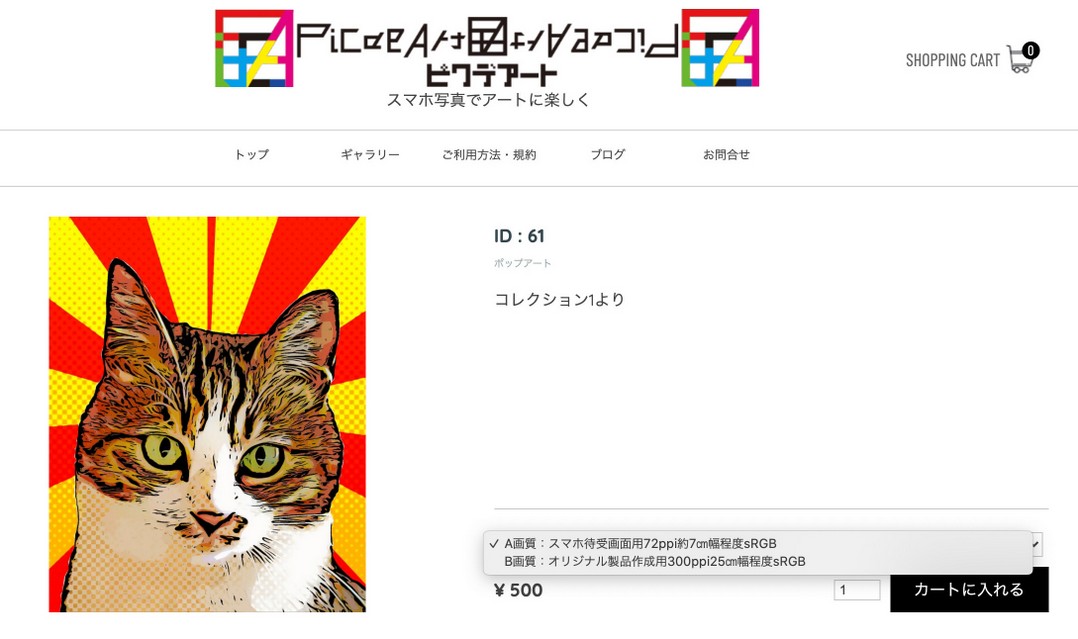 ドロップダウンメニューから画質を選択し「カートに入れる」をクリックして下さい。