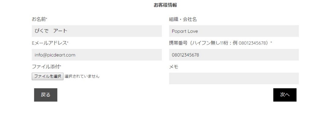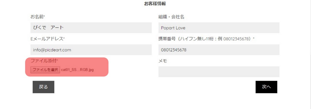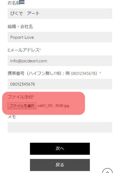 5:お客様情報を入力しアート加工を行うスマホ写真を添付する